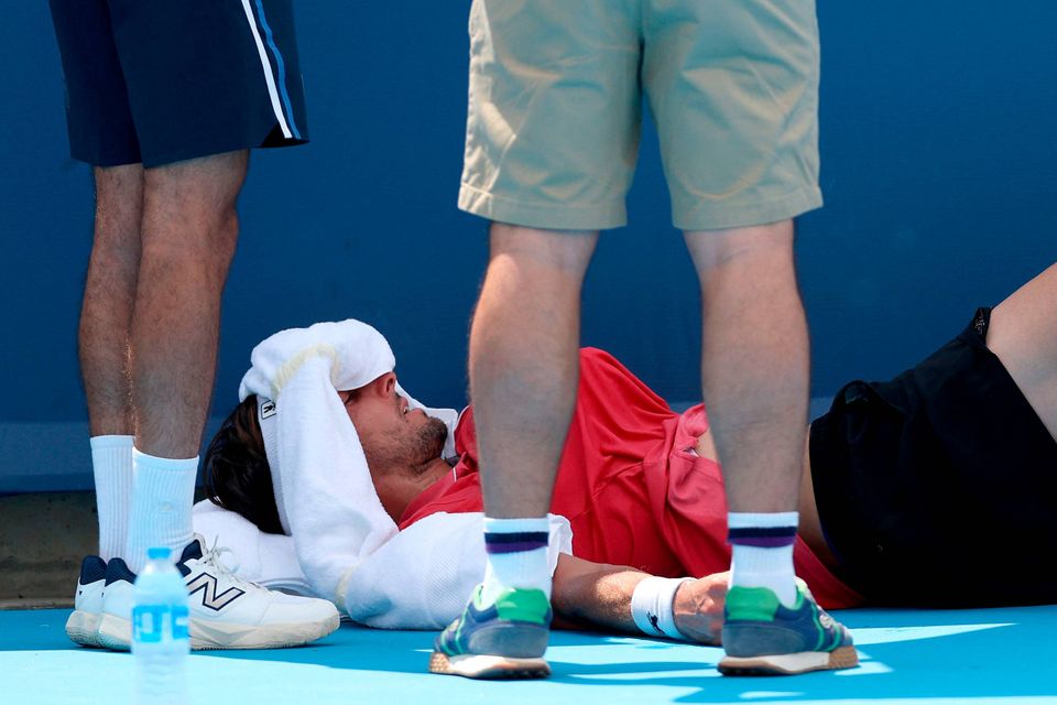 I andet sæt mod canadieren Felix Auger-Aliassime fik Rinderknech et ildebefindende på grund af varmen og måtte opgive at spille kampen til ende.